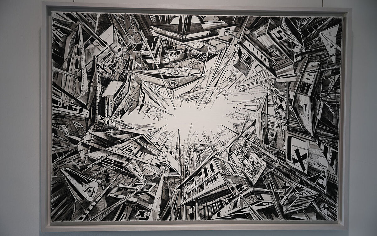 Die Ausstellung lädt mit Gemälden, Papierarbeiten, Skulpturen und Videoarbeiten dazu ein, in miteinander verwobenen Themenfeldern das Verhältnis von Mensch und Zukunft zu erkunden.