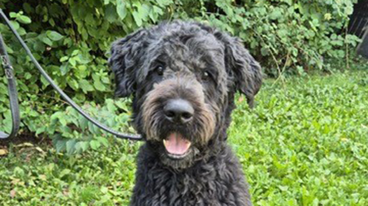 Der ca. 2019 geborene Bouvier des Flandres Rüde Beppo kam ins Tierheim, weil seine vorherigen Halter mit seiner rassetypischen Größe, seinem Gewicht und der aufwendigen Fellpflege überfordert war.
