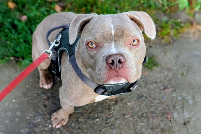 Der Mischling zählt zu den im LHundG unter §3 zusammengefassten Hunderassen, weshalb seine neuen Besitzer entsprechende Auflagen erfüllen müssen. Hierzu beraten die Tierheimmitarbeitenden gern.