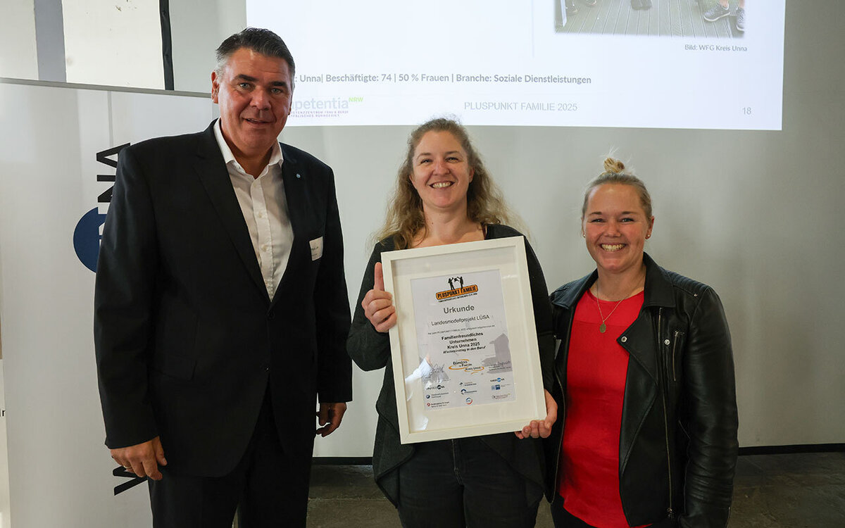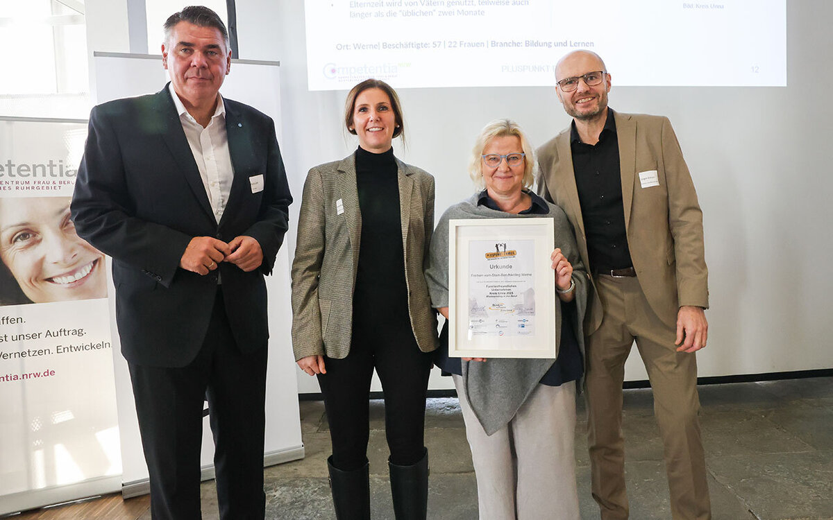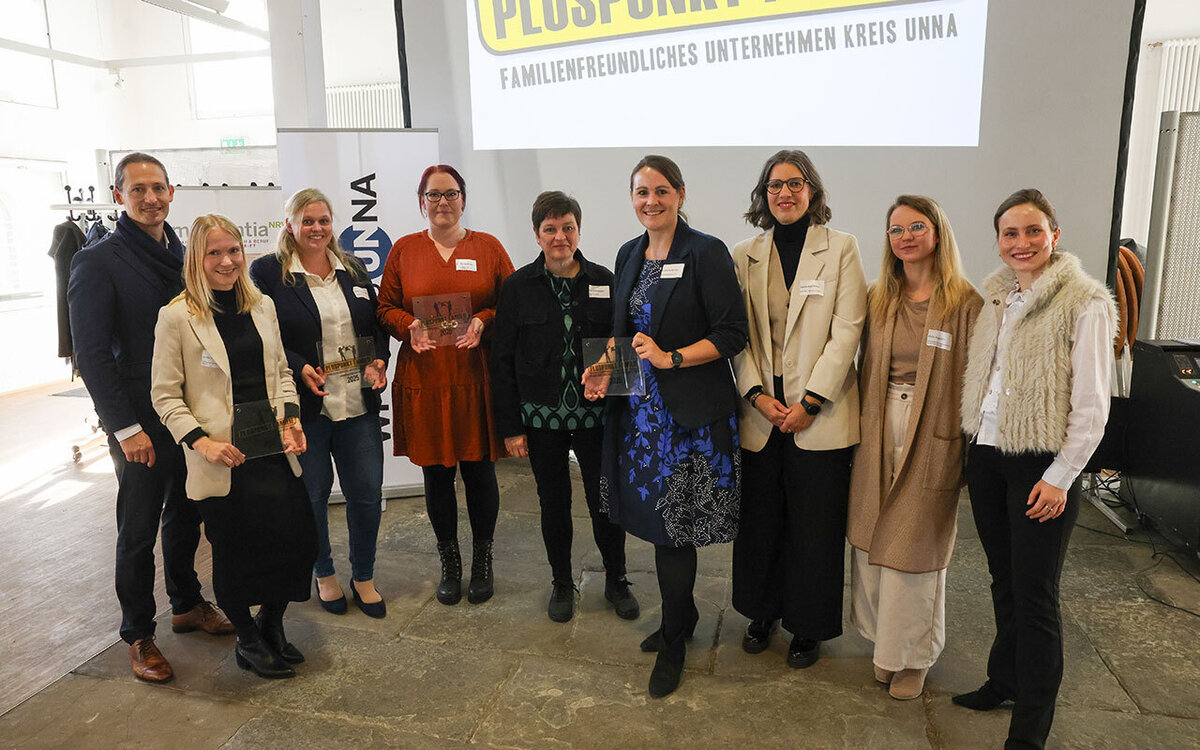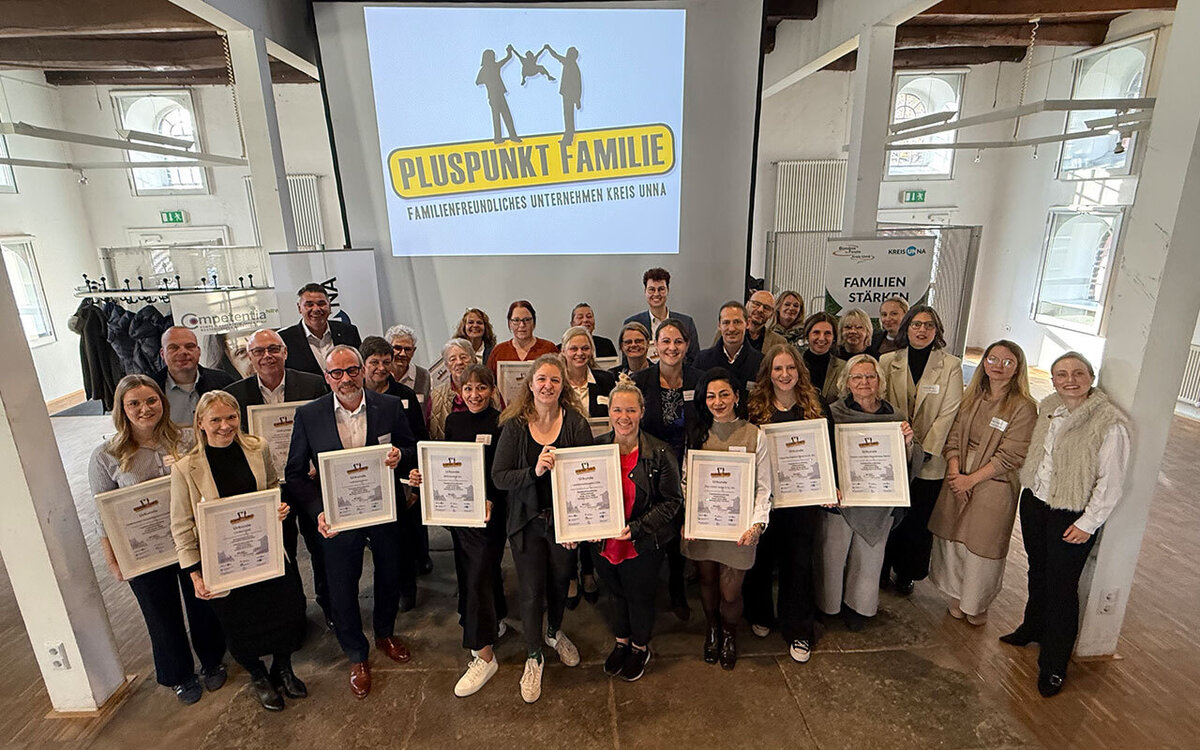 Das Bündnis für Familie Kreis Unna hat zum achten Mal den Preis „Pluspunkt Familie“ an Unternehmen verliehen. Diesmal unter dem Aspekt „Wiedereinstieg in den Beruf“. Am Donnerstag, 6. November, fand die Preisverleihung in der Ökologiestation in Bergkamen statt.
