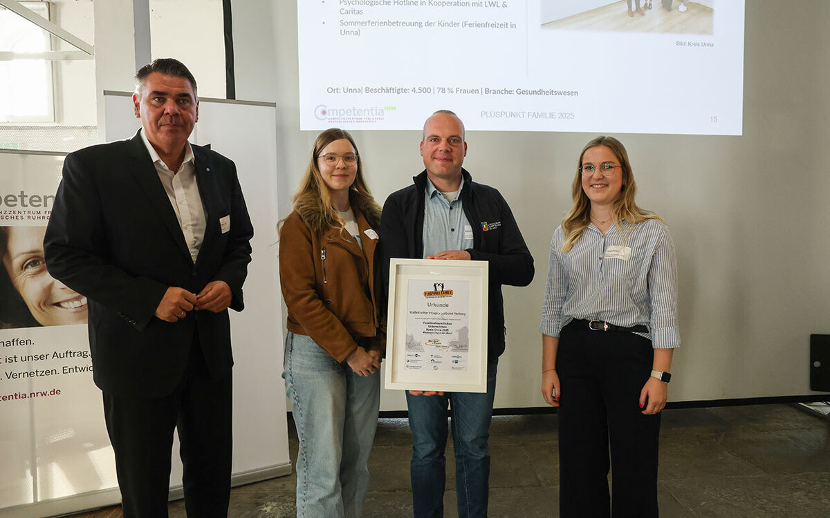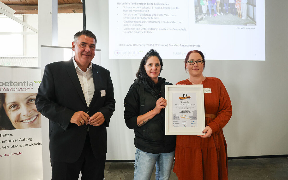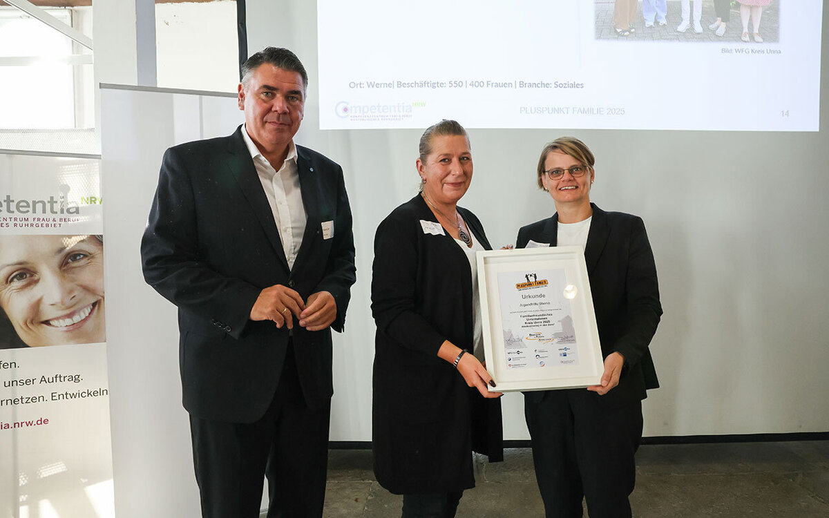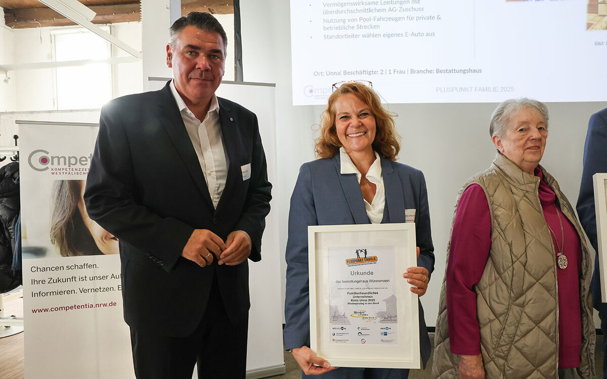 Das Bündnis für Familie Kreis Unna hat zum achten Mal den Preis „Pluspunkt Familie“ an Unternehmen verliehen. Diesmal unter dem Aspekt „Wiedereinstieg in den Beruf“. Am Donnerstag, 6. November, fand die Preisverleihung in der Ökologiestation in Bergkamen statt.