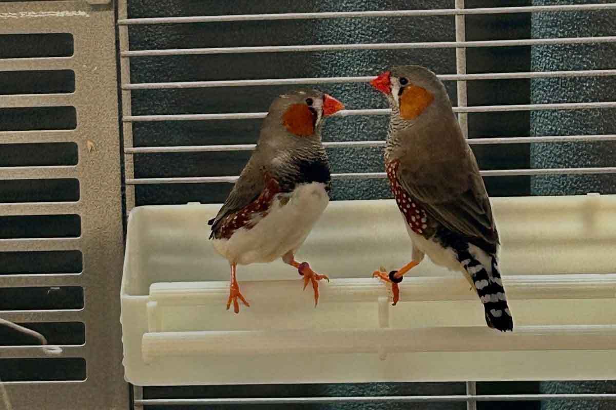 Die beiden Zebrafinkenhähne sind seit dem 21. Januar 2025 in der Obhut des Tierheims Kreis Unna. Sie suchen ein artgerechtes Zuhause mit ausreichend Hennen. Aktuell sind sie miteinander verpartnert. Eine große Voliere und/oder regelmäßiger Freiflug mit Artgenossen ist ein Muss für die Vermittlung.