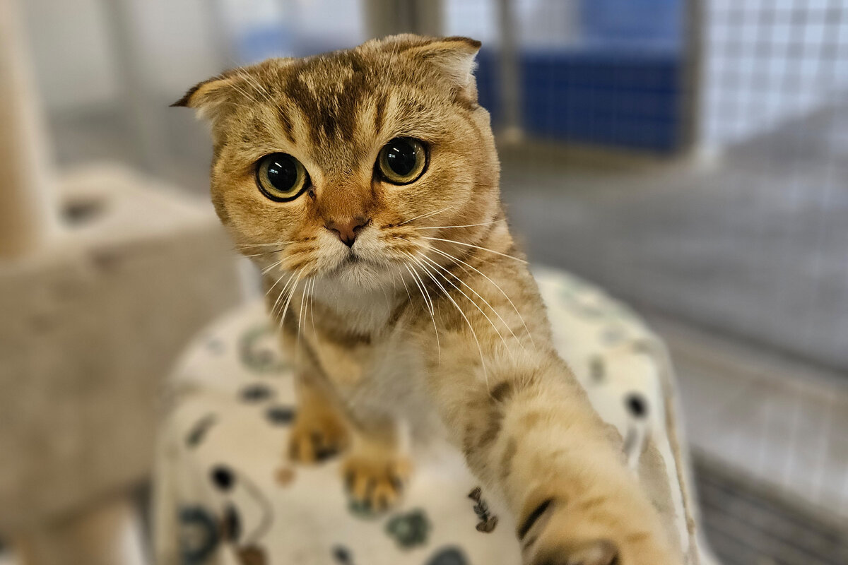 Foldy kam als Fundtier zu uns ins Tierheim und wurde nicht vermisst. Er ist absolut verschmust, verspielt und gesellig. Er sucht ein zu Hause in Wohnungshaltung mit einem Partnertier. Bei der Scottish Fold handelt es sich um eine Qualzucht. Rassebedingt hat Foldy die Anlagen für OCD, einer Fehlbildung des Knorpels und der Knochenentwicklung, die zu schmerzhaften Gelenkproblemen führen wird. Ein aktuelles Röntgenbild zeigt leichte Anfänge dafür, welche ihn aktuell nicht einschränken und auch nicht medikamentös behandelt werden müssen. Bei Interesse berät das Tierheimpersonal hierzu noch einmal genauer.