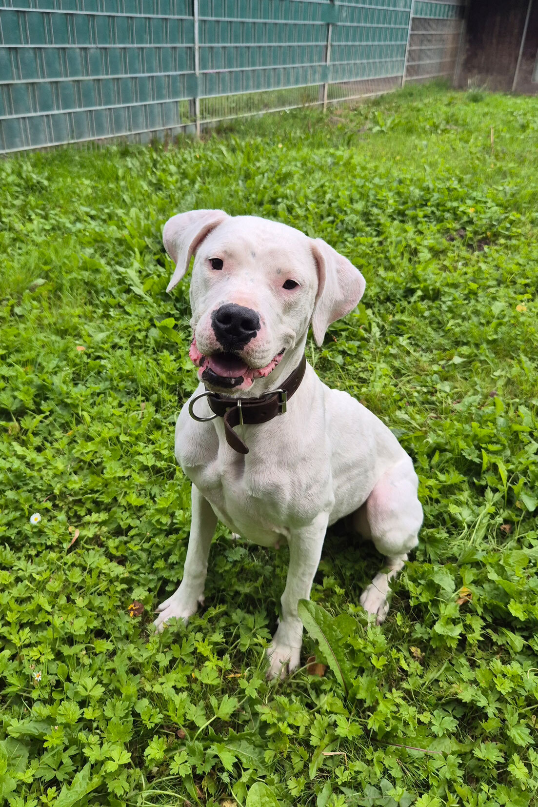 Der 2023 geborene Dogo Argentino Rüde Jakob kam mit seiner Schwester aus einer schlechten Haltung ins Tierheim. Ihre ehemaligen Besitzer konnten die gesetzlichen Anforderungen außerdem nicht erfüllen. Die Beiden haben nicht viel kennengelernt. Jakob zeigt sich sehr selbstbewusst in seinem Verhalten, ist aber auch neben seiner stürmischen Art situationsbedingt auch sehr sensibel. Er benötigt viel Bewegung, mentale Beschäftigung sowie klare Strukturen und Grenzen, um seine Energie positiv zu kanalisieren.